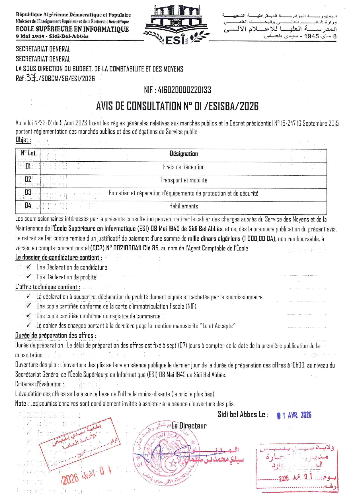 Ecole Superieure en Informatique 08-MAI-1945 SIDI BEL ABBES > Blog > استشارة رقم 01 /2026