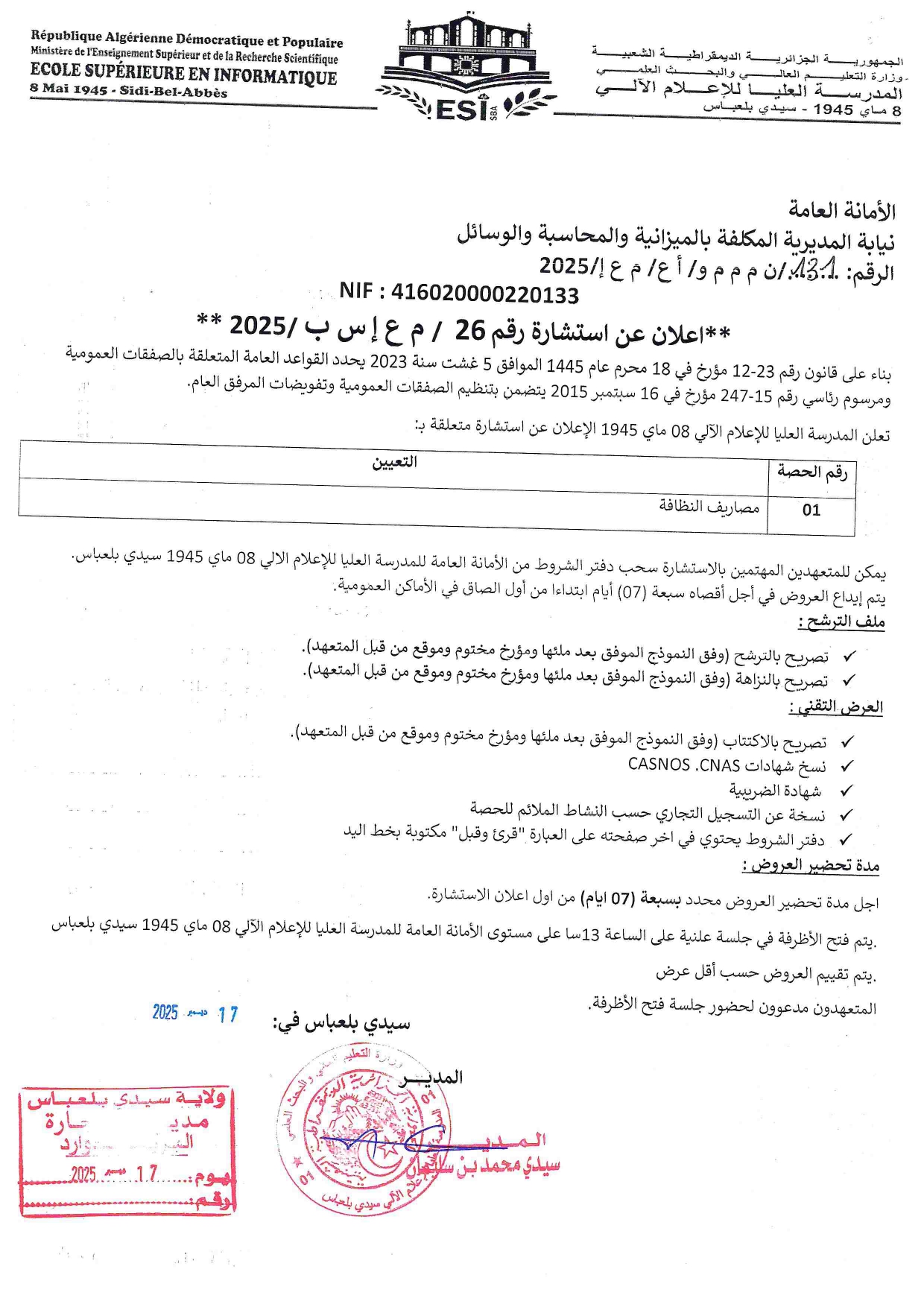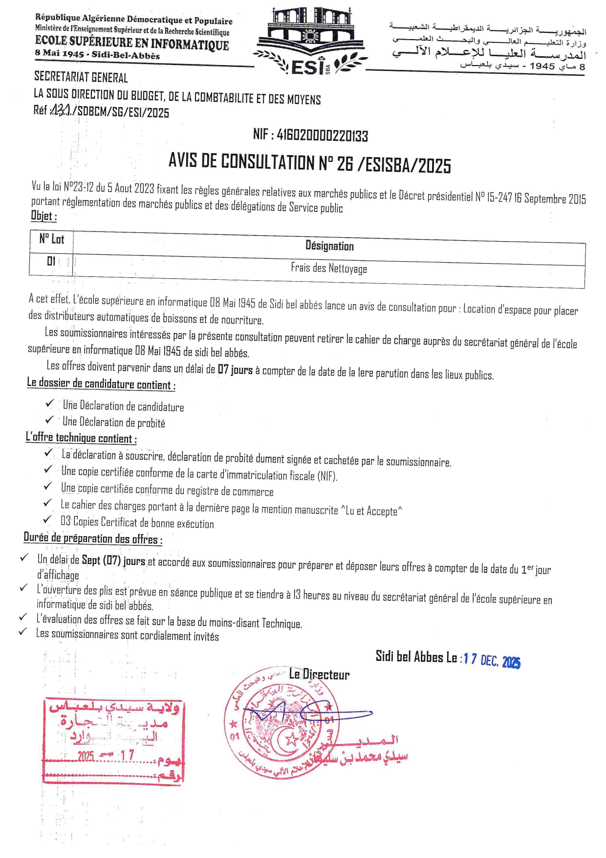 Ecole Superieure en Informatique 08-MAI-1945 SIDI BEL ABBES