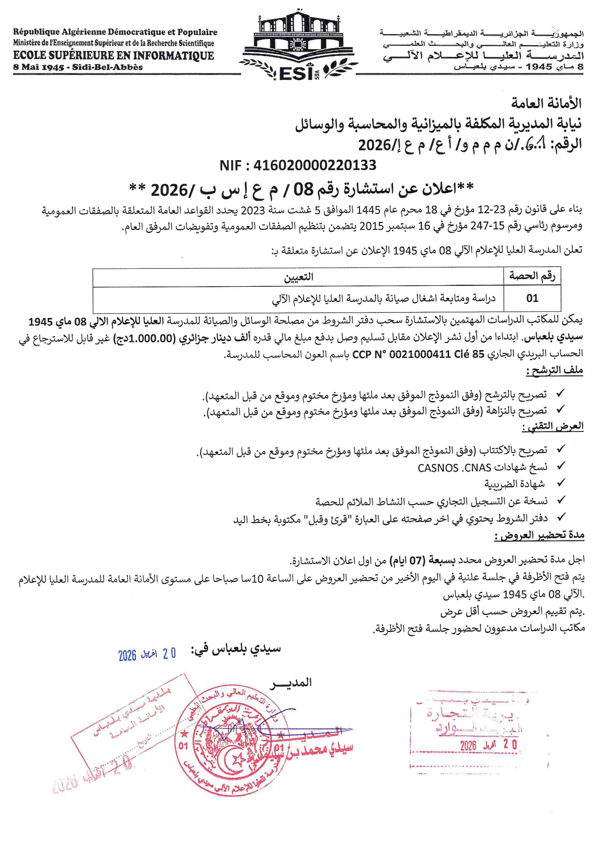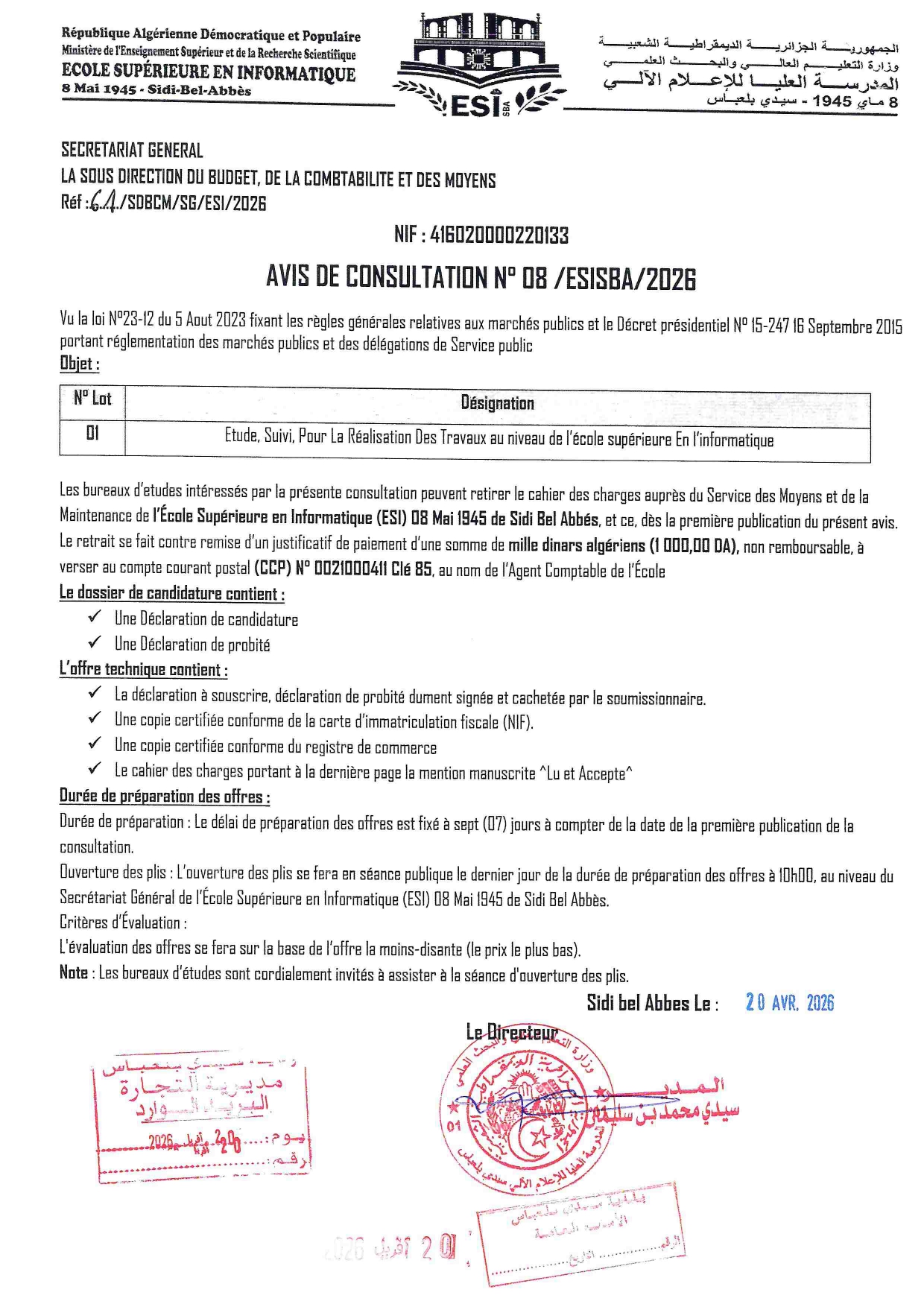 Ecole Superieure en Informatique 08-MAI-1945 SIDI BEL ABBES